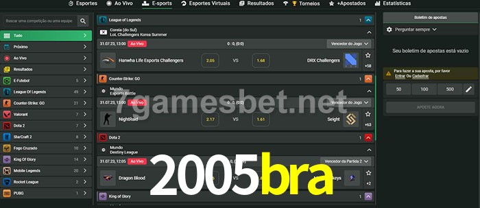 A aposta 2005bra oferece aos jogadores a experiência mais conveniente de apostas em eSports!